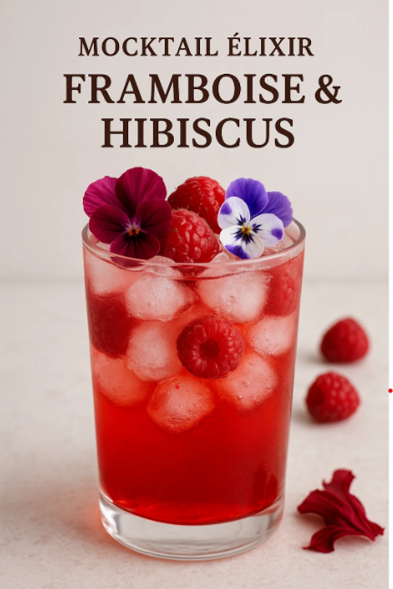 Quand les températures montent, rien de plus chic et désaltérant qu’un mocktail — une boisson sans alcool — 100 % naturelle, riche en saveurs et en bienfaits. Ce mocktail Élixir, à base de framboise et de fleur d’hibiscus, est une explosion de fraîcheur fruitée, parfaite pour un apéro d’été, un brunch ou un moment détente au soleil.