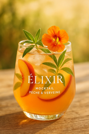 Mocktail Élixir pêche verveine – Recette fraîche et naturelle pour l’été